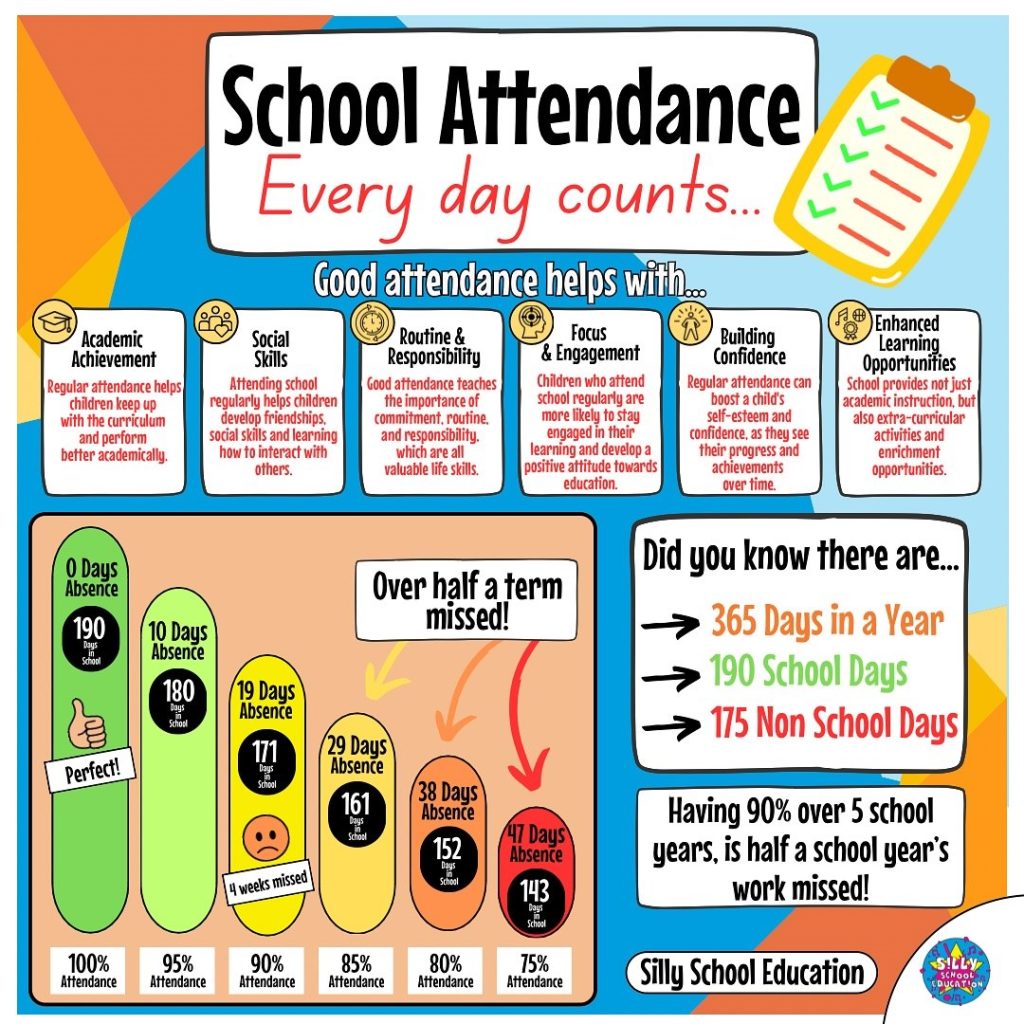 Coming to school every day really does make a difference to your child’s learning, wellbeing, and future success. The Department for Education (DfE) highlights that children who attend regularly are more likely to do well academically and build strong social skills.